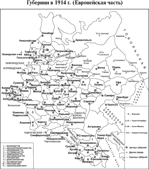 8. АТД Российской империи в начале XX века. В последние предреволюционные годы произошло сравнительно немного изменений АТД России: вновь получила самостоятельность Камчатская область, а также появилась новая Сахалинская область. На юге Сибири к России была присоединена территория нынешней Тувы под названием Урянхайский край.