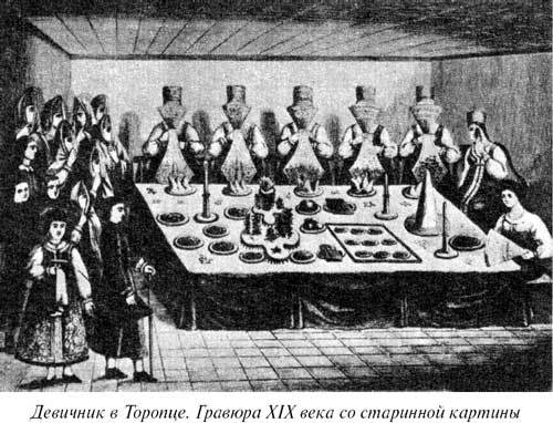 Девичник в Торопце. Гравюра XIX века со старинной картины