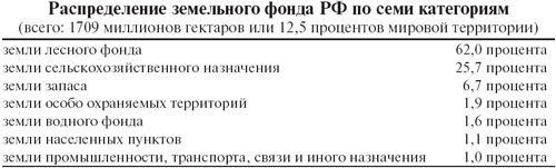 Принятый Земельный кодекс сохраняет принцип деления земель на семь категорий (земли сельскохозяйственного