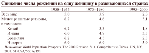 В самом деле, именно высокая рождаемость, характерная для развивающихся стран, несмотря на значительное снижение смертности, стала причиной мирового демографического взрыва ХХ века: за столетие население планеты почти дважды удвоилось, превысив шесть миллиардов человек, тогда как к началу ХХ века оно лишь немногим превосходило полтора миллиарда. Соответственно, если, как это сделано в прогнозе ООН, исключить вероятность резких подъемов смертности вследствие каких-либо глобальных катастроф, то дальнейшая динамика демографического взрыва зависит от показателей рождаемости в развивающихся странах.