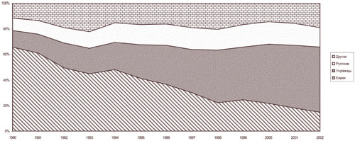Рис. 4. Этнический состав эмигрантов в страны дальнего зарубежья в 1990–2002 годах (в процентах)