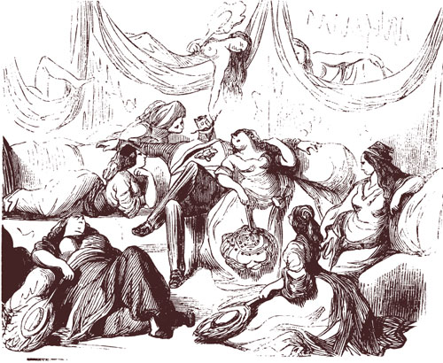 Рассказы о роскоши сибаритов возникают главным образом после их гибели. Правда, уже Геродот упоминает некоего сибарита-богача по имени Сминдирид. Он сватался к дочери Сикионского тирана Клисфена, и в поездке к невесте его сопровождали от тысячи до трех тысяч человек прислуги — рыболовов, птицеловов и поваров[12]. У Афинея (III век н. э.) тот же Сминдирид хвалится тем, что 20 лет не видел ни восхода, ни заката солнца, и это якобы свидетельствует о «нетрудовом» образе жизни. Однако в другом месте говорится, что в климате этих мест (возможно, малярийных) так поступает тот, кто не хочет умереть до срока[13].