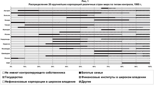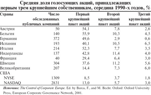 2. Однако концентрированная собственность преобладает не только в развивающихся, но и в большинстве развитых стран. Несмотря на высокий уровень экономического развития и хорошо функционирующую систему институтов, в них не наблюдается отделения собственности от контроля в смысле Берли — Минза: структура собственности остается высококонцентрированной. Очевидно, что за этим должны скрываться какие-то иные факторы помимо общего состояния экономической или институциональной среды.