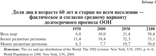 Старение населения — это изменение его возрастного состава, при котором сокращается доля детей и молодых людей и увеличивается доля пожилых. Этот процесс действительно идет во всем мире — сначала он затронул только развитые страны, но постепенно распространяется и на все остальные (см. табл. 1).