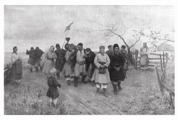 В Галиции под властью Габсбургов в среде русинского населения также происходит ожесточенная борьба между разными стратегиями идентификации. Уже в 1850-е годы постепенно сходит на нет привлекательная прежде для части русинской элиты русинско-польская версия идентичности, которая отражена в формуле «gente ruteni, natione poloni», т. е. родом — русин, но польский гражданин[11]. Борьба продолжалась, в основном, между «русофилами», т. е. сторонниками общерусской концепции, и «народовцами», т. е. сторонниками украинской идентичности. Таким образом в Галиции, в других социальных и политических условиях, воспроизводился тот же конфликт, что и в Российской империи. Народовцы постепенно берут верх в последние десятилетия XIX века, хотя русофилы сохраняли заметное влияние и в начале XX века. Расклад сил отчасти объяснялся тем, что здесь имперская власть играла на стороне народовцев, а русофилы подвергались, особенно начиная с 1880-х годов, довольно жестким преследованиям[12]. Кроме того, было важно, что русофильские силы редели за счет оттока представителей этого лагеря в Российскую империю, а украинская ориентация усиливалась за счет притока людей и средств из украинофильской среды в России[13]. Наиболее ярким примером может здесь служить М. С. Грушевский, сыгравший весьма важную роль в развитии украинского движения в Галиции.