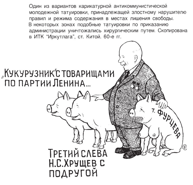 Кедров Н. А. (1937 года рождения, русский, из семьи священника, трижды судим за кражи, заключенный, г. Потьма Мордовской АССР) в 1959–1961 гг. среди заключенных ругал Хрущева, читал антисоветские стихи "Проснись Ильич" и "Мне бы топор вместо пера" и песни про Хрущева, "содержание такое, чтобы т. Хрущева посадили в спутник и отправили вместо собаки", написал письмо Хрущеву с нецензурной бранью.