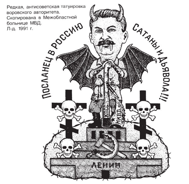 Скуратов И. Л. (1911 года рождения, русский, образование среднее педагогическое, прежде судим, путевой рабочий, ст. Имачи Амурской железной дороги) в сентябре 1953 г. сказал: "Вот приеду в Москву, зайду в мавзолей, выколю глаза этой грузинской морде (назвал фамилию вождя) и залью ему мочой глаза".
