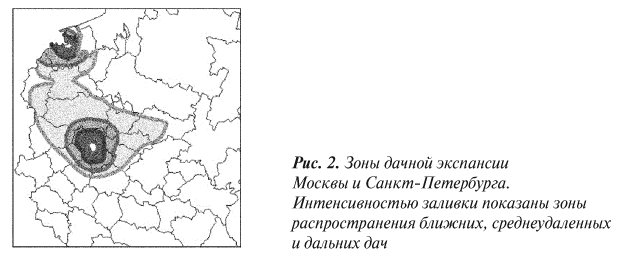 Итак, в зоне распространения среднеудаленных дач при сильном дачном давлении и деградации сельской жизни деревня оказалась не готовой к приему большого потока горожан даже для сезонного проживания. И хотя сельское хозяйство и промышленность здесь зачастую в еще большем упадке, чем в пригородах, развитие сервисных функций остается на низком уровне. А местные власти, воспитанные в идеологии индустриального промышленно-сельскохозяйственного развития села, не видят перспектив, связанных с дачным освоением районов. Исключение составляют лишь наиболее близкие к Московской области районы, давно ставшие частью столичного региона.