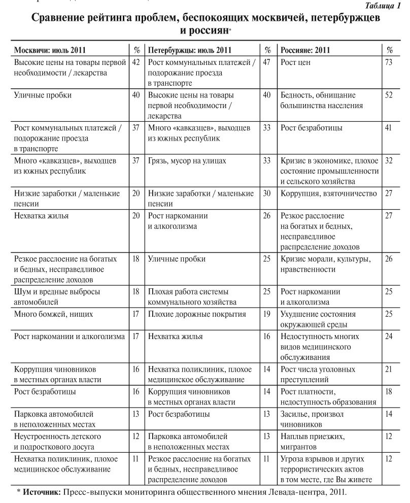 Мониторинг общественного мнения, проводимый центром Юрия Левады, с завидной регулярностью показывает, что «наплыв мигрантов», особенно «кавказцев» и «выходцев из южных республик», занимает третье место в рейтинге основных проблем москвичей и петербуржцев[4]. При этом плохая экология, нехватка и низкое качество жилья, произвол милиции, снижение уровня школьного образования и медицинского обслуживания, преступность и бандитизм отодвигаются респондентами в конец списка.