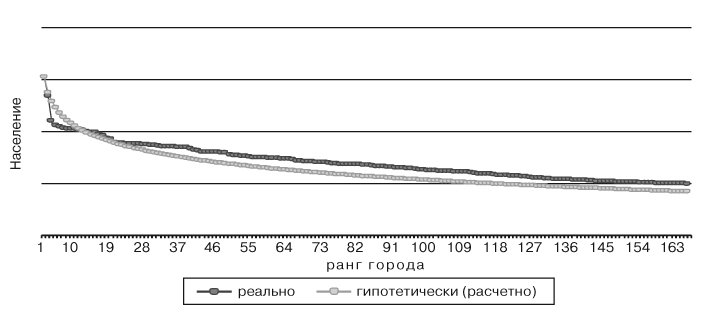 Реальная недоурбанизированность России отчасти следует и из рис. 2.