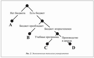 В 2006 году, когда описываемое развитие достигло высшей точки, российские вузы можно было разделить на четыре основных экономических типа[15]. Рисунок 2 показывает их примерное соотношение в виде классификационного дерева.